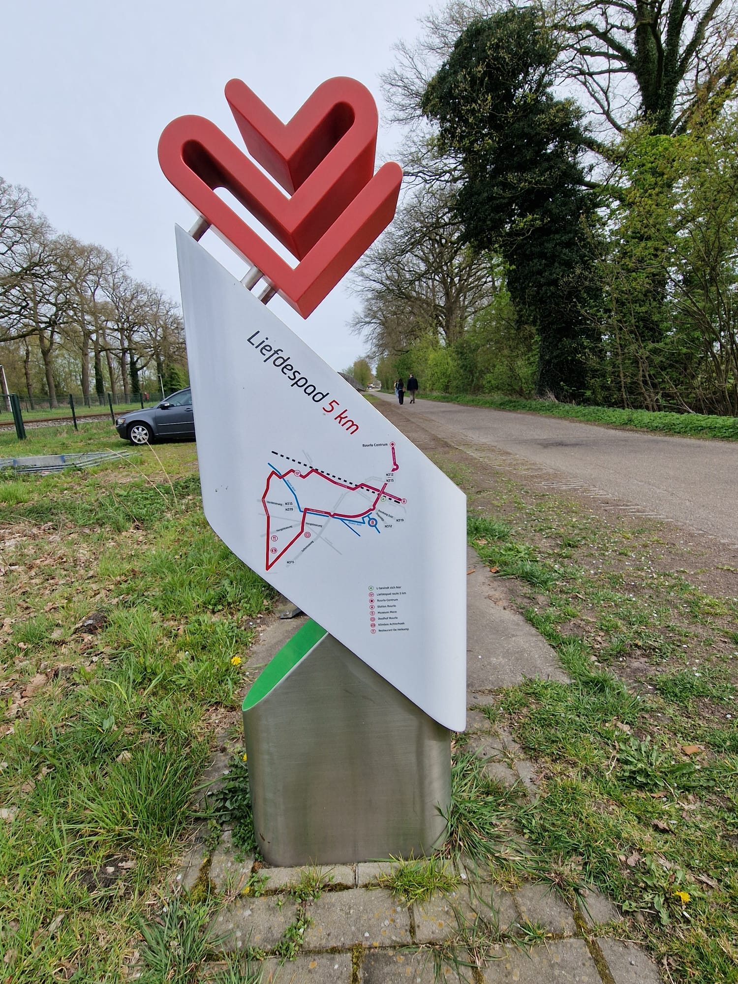 We hebben het Liefdespas gelopen met op de route een aantal kunstwerken. Gelukkig heeft Ad deze op de foto gezet. Alie vertelde onderweg over de flora en de fauna en af en toe liet de zon zich ook zien.