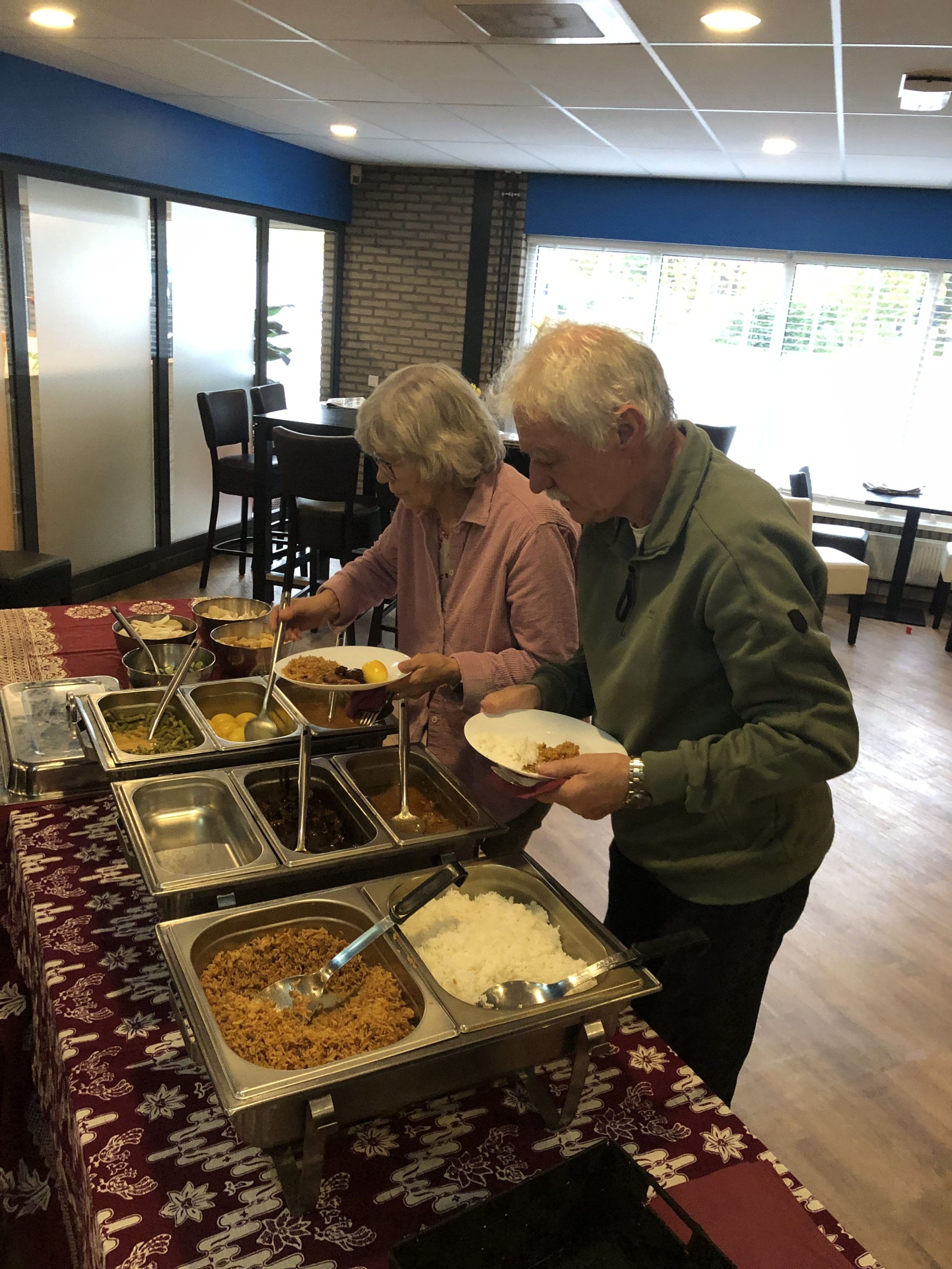 Moegestreden keken we uit naar de Indische maaltijd verzorgd door Dapur Kita en konden om 17:30 uur aan tafel.